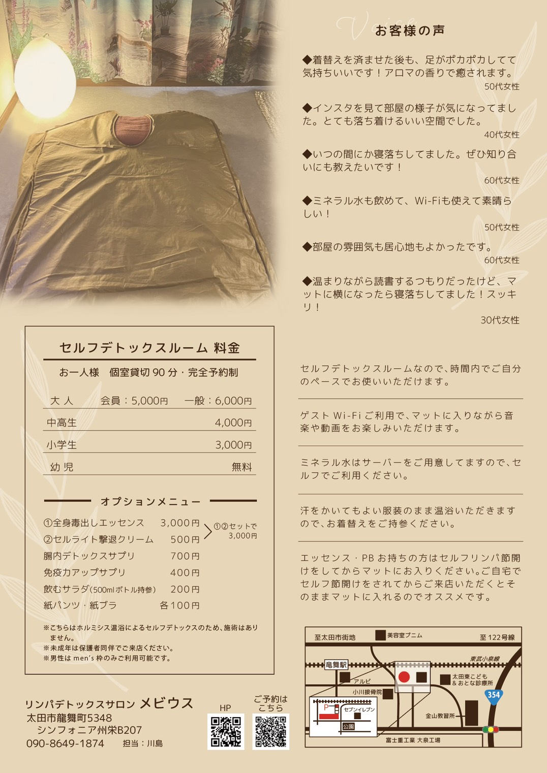 ※尚、別室で施術中の場合はお見送りができませんのでご了くださいませ。