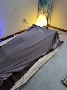 - 着衣のままマットに入って温まっていただけます。汗をかいたら温浴後はお着替えをしてお帰りください。
